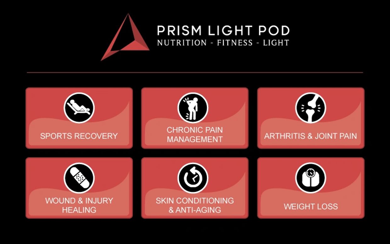 Leading professional collegiate and amateur athletes use the Prism Light Pod to accelerate sports recovery. After a 15 min Light Pod session notice a decrease in muscle soreness and reduction in aches and pain. Sore muscle tissues, joints and ligaments are repaired up to 10 times faster. Prism Light Pod stimulates the mitochondria of each muscular cell using full-body red li